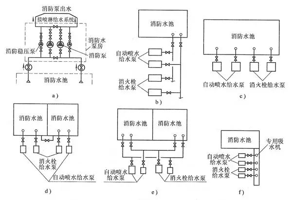 3)當消防水泵和消防水池位于獨立的兩個基礎(chǔ)上且相互為剛性連接時,吸水管上應(yīng)加設(shè)柔性連接管。