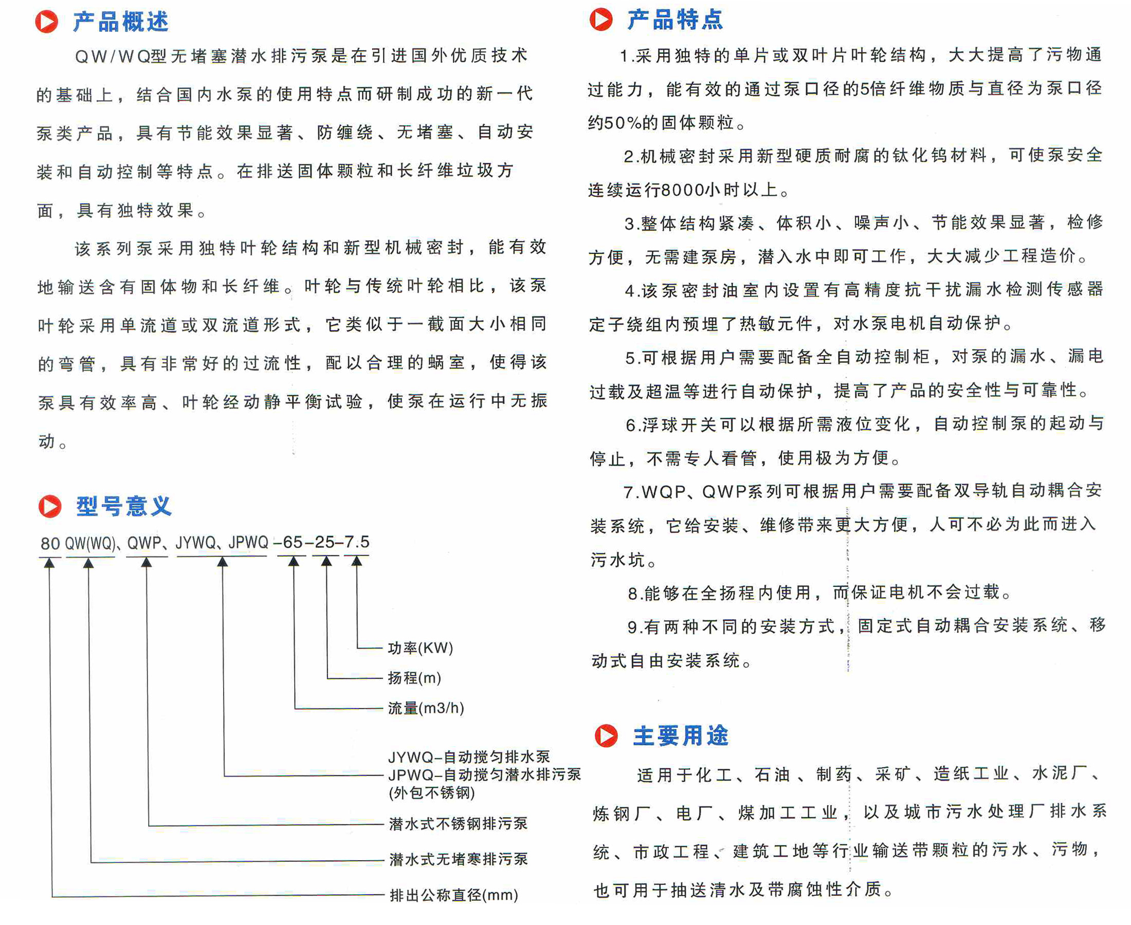 WQ-QW固定式-移動(dòng)式潛水排污泵